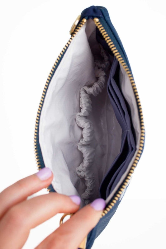 Navy Abstract Vegan Leather Wristlet – Convertible Crossbody Wallet