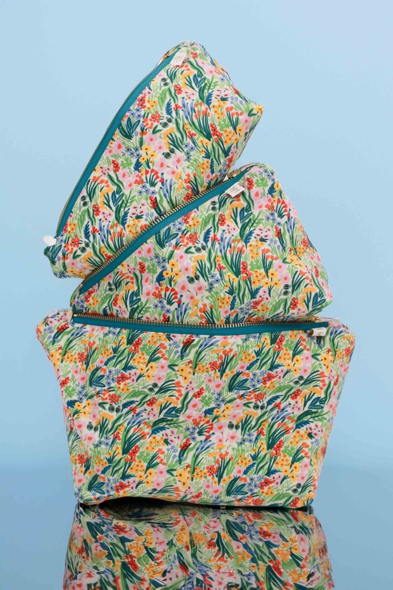 The Maxx Travel Bag is our largest and most versatile pouch—designed to handle whatever life throws your way. This version features Rifle Paper Co.’s iconic floral cotton on the outside, and a fully wipeable oilcloth vinyl lining on the inside.