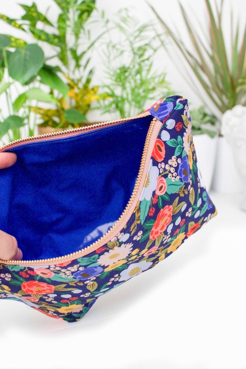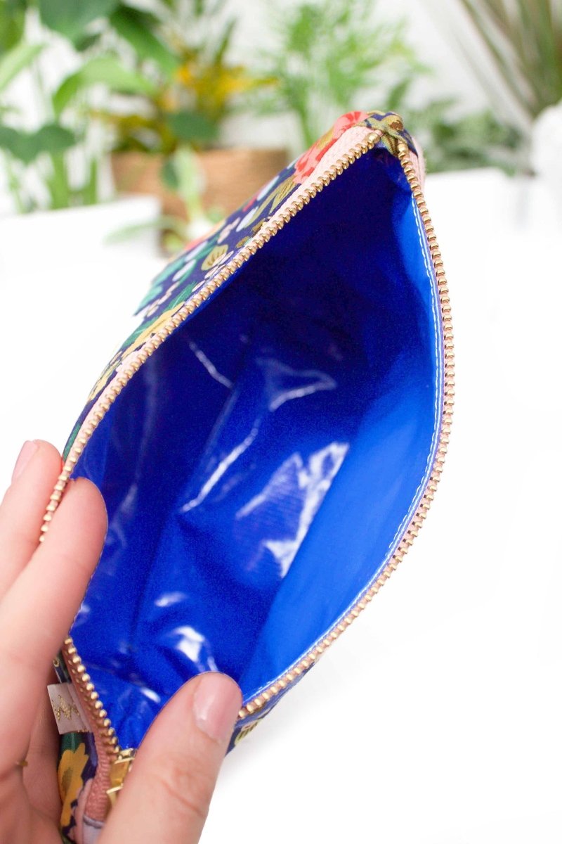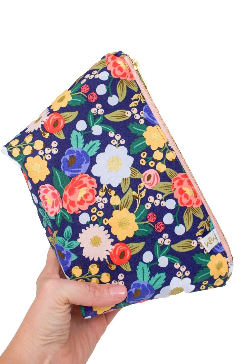 The Mini Maxx is our most versatile toiletry bag—made for beauty, travel, and everyday moments. This version features Rifle Paper Co.’s Vintage Garden pattern: a soft floral cotton with layered shades of blue, sage, red, and yellow.
