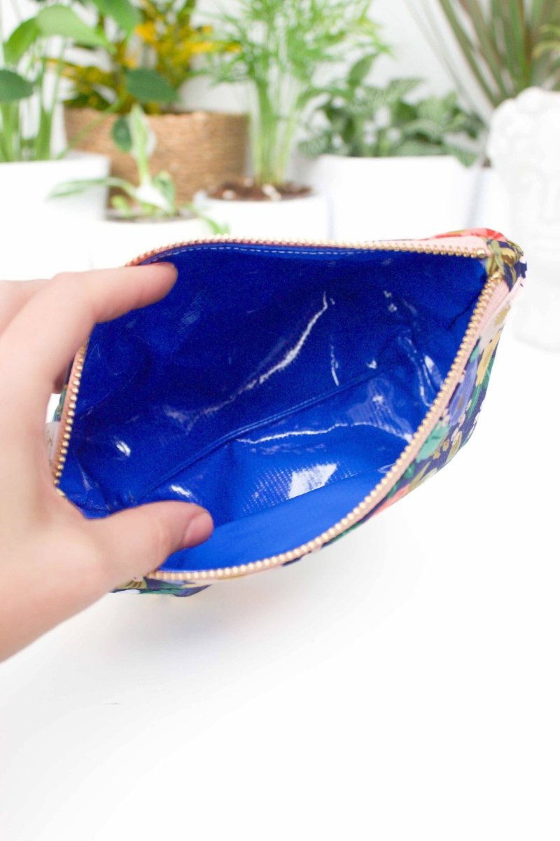It’s the perfect medium-size makeup pouch for women who want style and function on the go. Use her as a daily makeup bag, a toiletry pouch, a sunscreen carrier for summer outings, or a tote organizer for purse essentials. She’s fully lined in leakproof oilcloth vinyl, so messes are no big deal—just wipe and go.