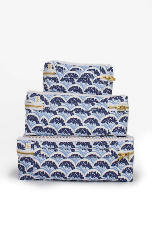 Mint Blue Scallop 3-Piece Toiletry Bag Set – Elegant Travel Bundle