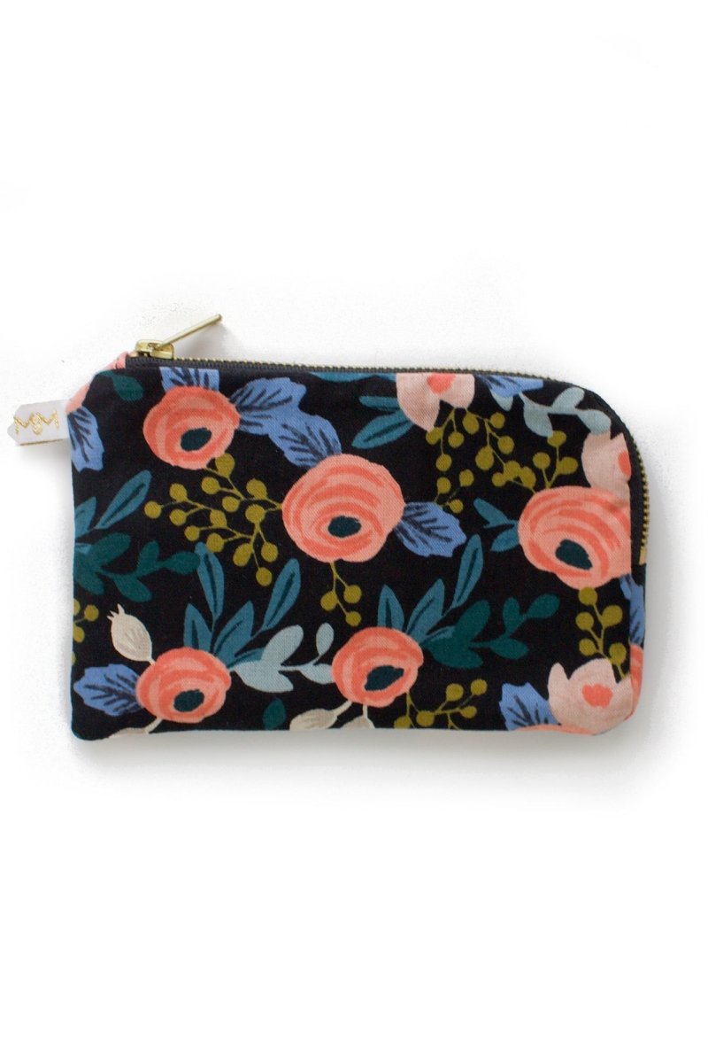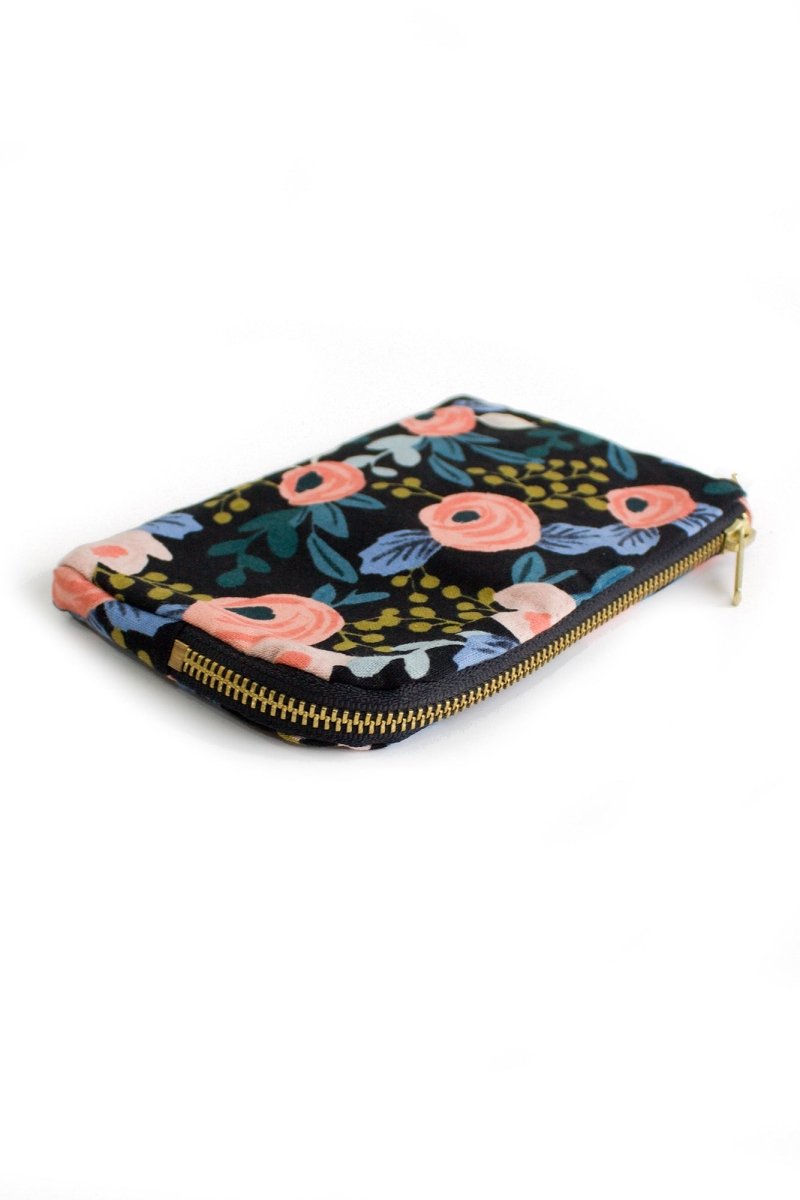 The Midnight Garden Canvas Everyday Pouch features Rifle Paper Co.’s signature floral canvas on the outside and a fully wipeable oilcloth lining inside. She’s made for catching all the tiny things that usually roll around in your bag—without turning into a mess.