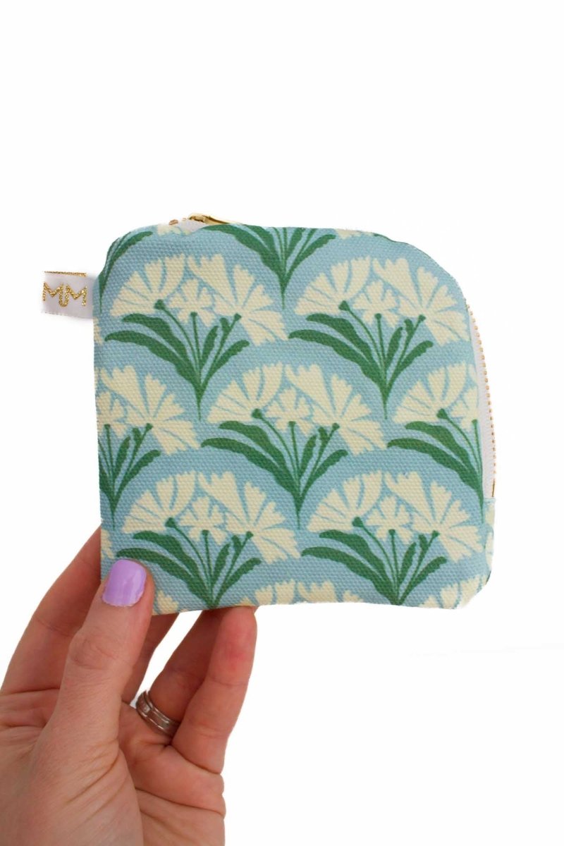 Handmade with Rifle Paper Co.’s Art Deco Scallop Mint canvas and lined with a leakproof, wipeable interior, she’s compact but mighty. The perfect size for organizing the tiny chaos in your bag—think tampons, eye drops, pacifiers, pill bottles, or your favorite lipstick.