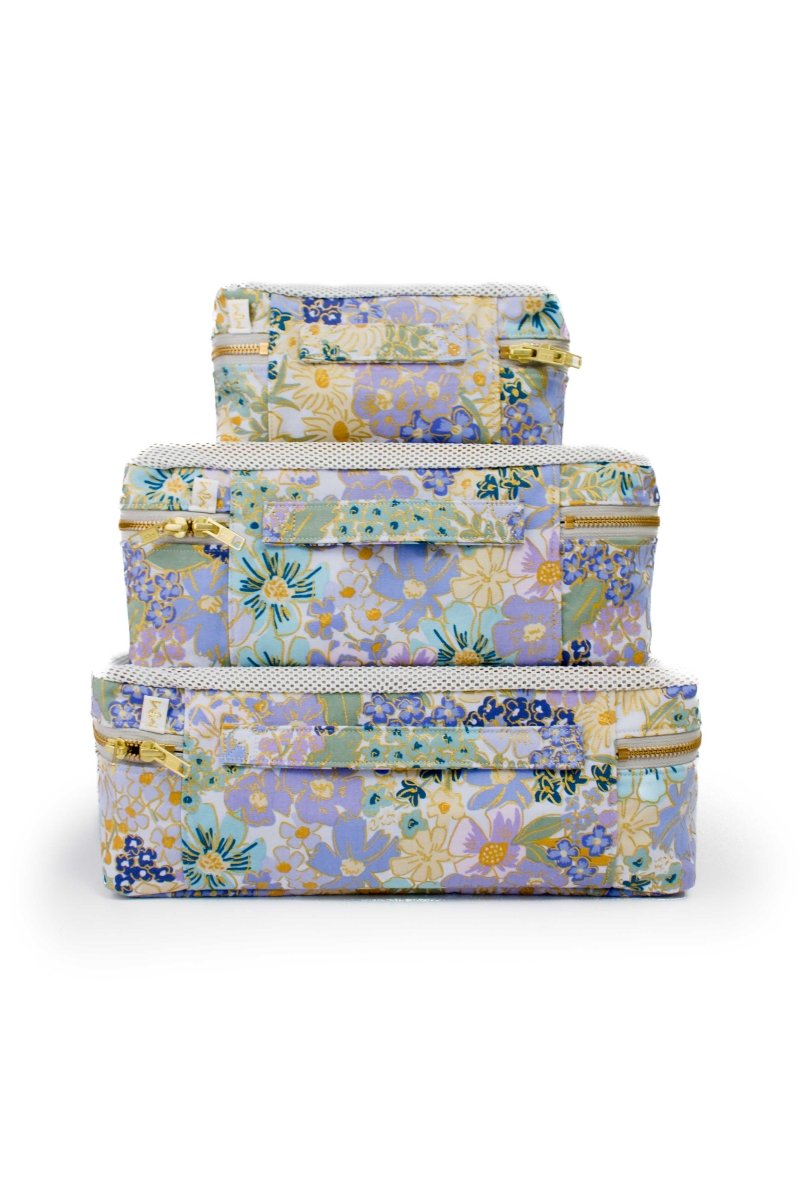 English Rose Blue Canvas 3-Piece Packing Cube Set