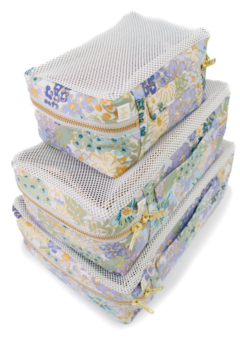 The stretch mesh tops flex to fit your essentials (and your last-minute additions), while the breathable cotton interior keeps things clean, soft, and suitcase-ready. Whether you’re packing for a weekend getaway or two weeks abroad, this set brings calm, floral order to your luggage.