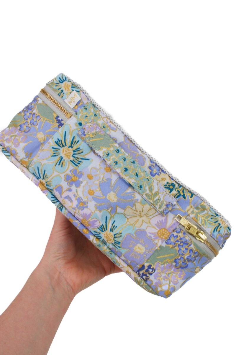 This floral favorite is available in every size we make—from cosmetic pouches to full totes. Shop the full English Rose Blue Canvas Collection →